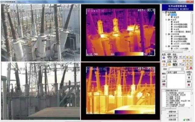 紅外熱像儀識別電氣組件及周圍環境(如天空或云)的熱信息中存在的溫差,并相互對比相同組件的溫度值,內置邏輯內存和數據通信允許熱像儀使用用戶定義的設置對比圖像中的溫度值,并把溫度數據發送至中央監測站進行趨勢分析,觸發警報,生成異常報告,紅外熱像儀甚至能通過觸發電子郵件信息通知遠程辦:公室內的設備管理人員發生了異常現象,因此,紅外熱像儀是變電站設備無人值守監控時的理想之選。