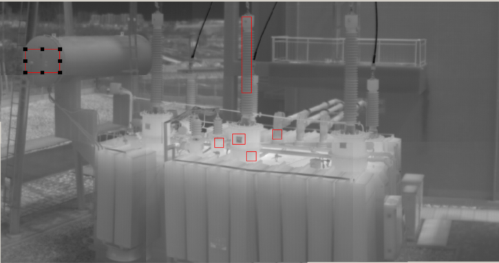 1、通過智能紅外全景拼接技術,獲得該圖中設備的精確位置及工作溫度