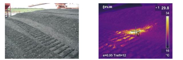 儲煤場堆放煤容易引起自燃,如儲煤量太大時一旦發生自燃,造成的損失不可估計。這時,我們可以借助紅外熱像儀準確快速查找自燃點,將自燃點挖出處理,減少不必要的損失。同理,煤矸石山自燃釋放的有毒有害氣體,對矸石山周圍的人體健康,生存環境,社會穩定等均造成嚴重的污染危害。紅外熱成像儀是檢測煤矸石山是否自燃的最好工具!
