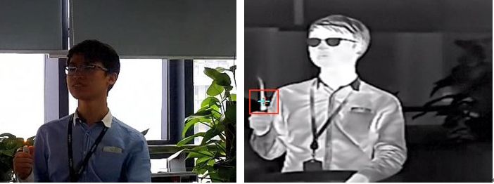 周界防范熱成像(右):通過基于深度學習的行為分析算法,一旦有可疑目標入侵,即主動報警,實現事前預防。