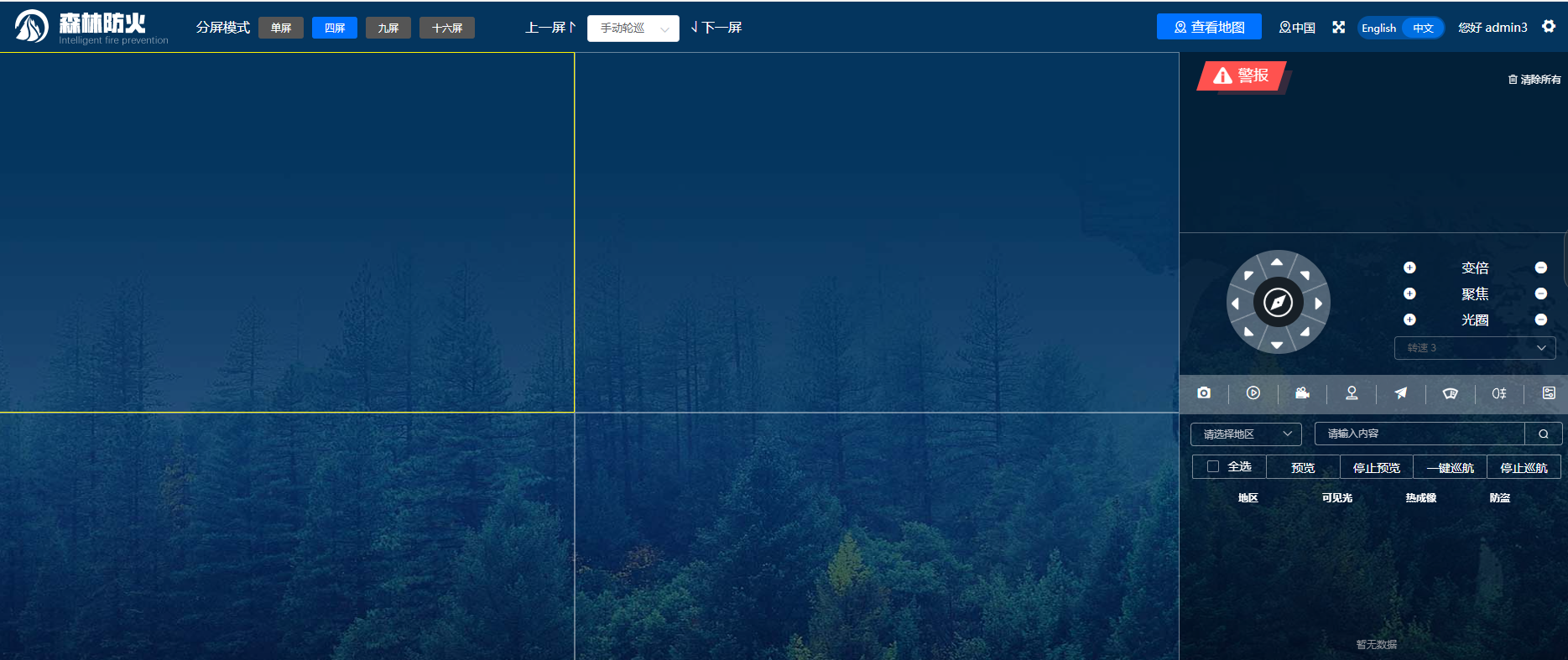 實時接入前端所有防火監(jiān)控點視頻,并可變倍、聚焦、轉(zhuǎn)動云臺、設(shè)置巡航路徑等。