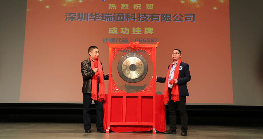 2015年11月30日,深圳華瑞通科技有限公司正式掛牌前海股權交易中心,掛牌代碼666587。這是公司發展史上的重要里程碑,預示著公司發展自此掀開嶄新的一頁。公司董事長任勇先生出席并參與了上市掛牌儀式。