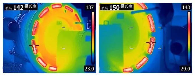 但是通過KT384紅外熱像儀的檢測,可以直觀地看到電磁剎車溫度高達150度,若內(nèi)部線圈絕緣程度不夠,則很容易造成絕緣程度下降。