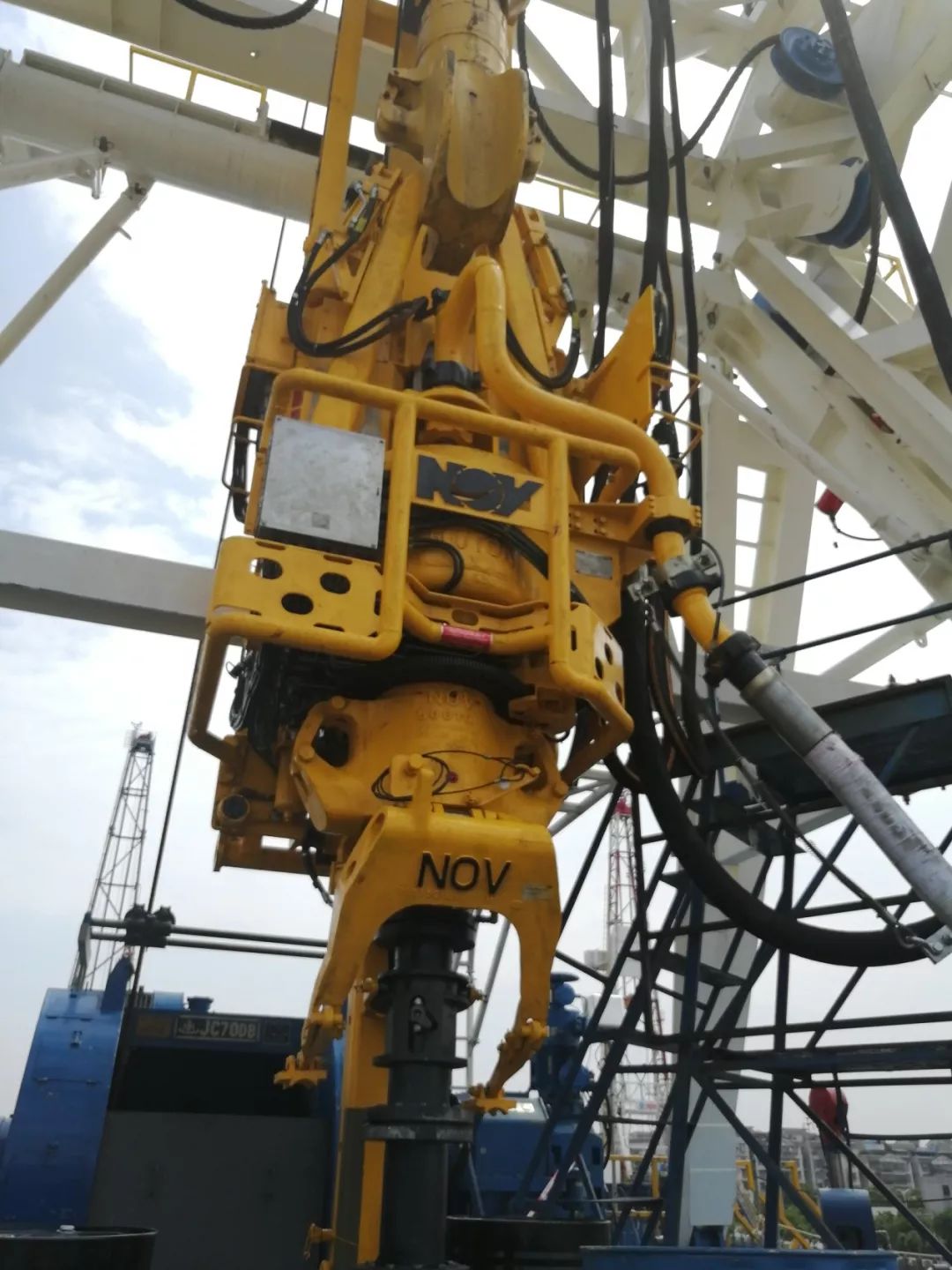 “頂驅(qū)”是頂部驅(qū)動設備的簡稱,其價值為1千多萬人民幣,集成了機械、電氣、液壓、高壓循環(huán)等設備,泥漿通道承壓高于50MPa,底部承載約400噸,電功率400KW。“頂驅(qū)”是鉆井過程設備中,較貴重的設備。因其懸掛在游車上,上下移動,高點距離鉆臺40多米,低點約為7米。在日常巡檢中,觀察非常不方便。日常巡檢中,沒有足夠的時間進行檢查,如果停下設備進行檢查,將會造成很大的損失。利用KT384紅外熱像儀,站在鉆臺上即可清晰的觀察出各部件的運行狀態(tài)及溫度參數(shù),給日常巡檢帶來了極大的方便。