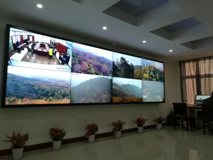 市森林防火指揮中心監(jiān)控室內(nèi),豎在墻上的視頻圖像顯示著中山陵、棲霞山、幕府山、老山、游子山等林區(qū)現(xiàn)狀。