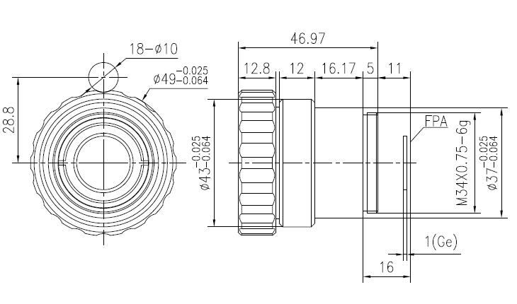 31.9°X 24.6°(336X256 17um) 36.2°X 27.5°(384X288 17um) 43.6°X 33.4°(320X240 25um) 51.3°X 39.6°(384X288 25um) 57.1°X 47.0°(640X512 17um) |